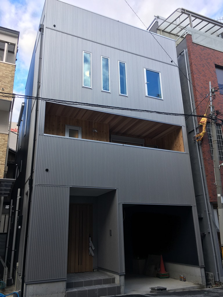 グレーに包まれたシンプルでスタイリッシュの家。縦の窓がよりシャープさを演出しています。