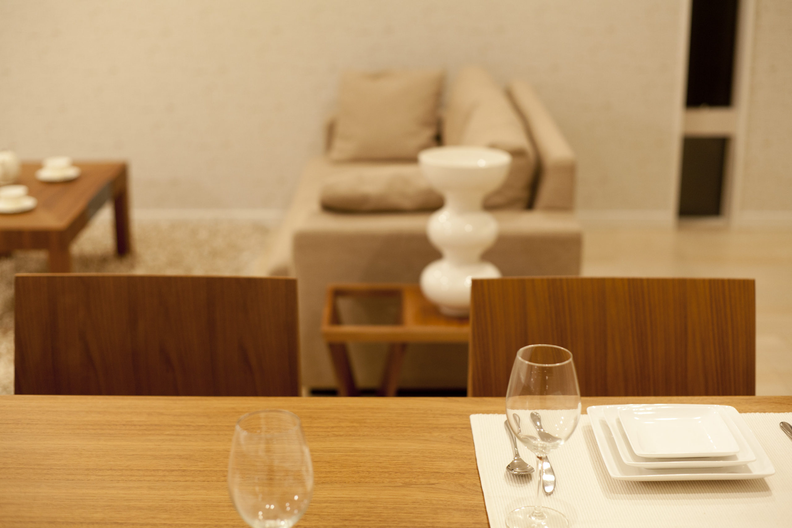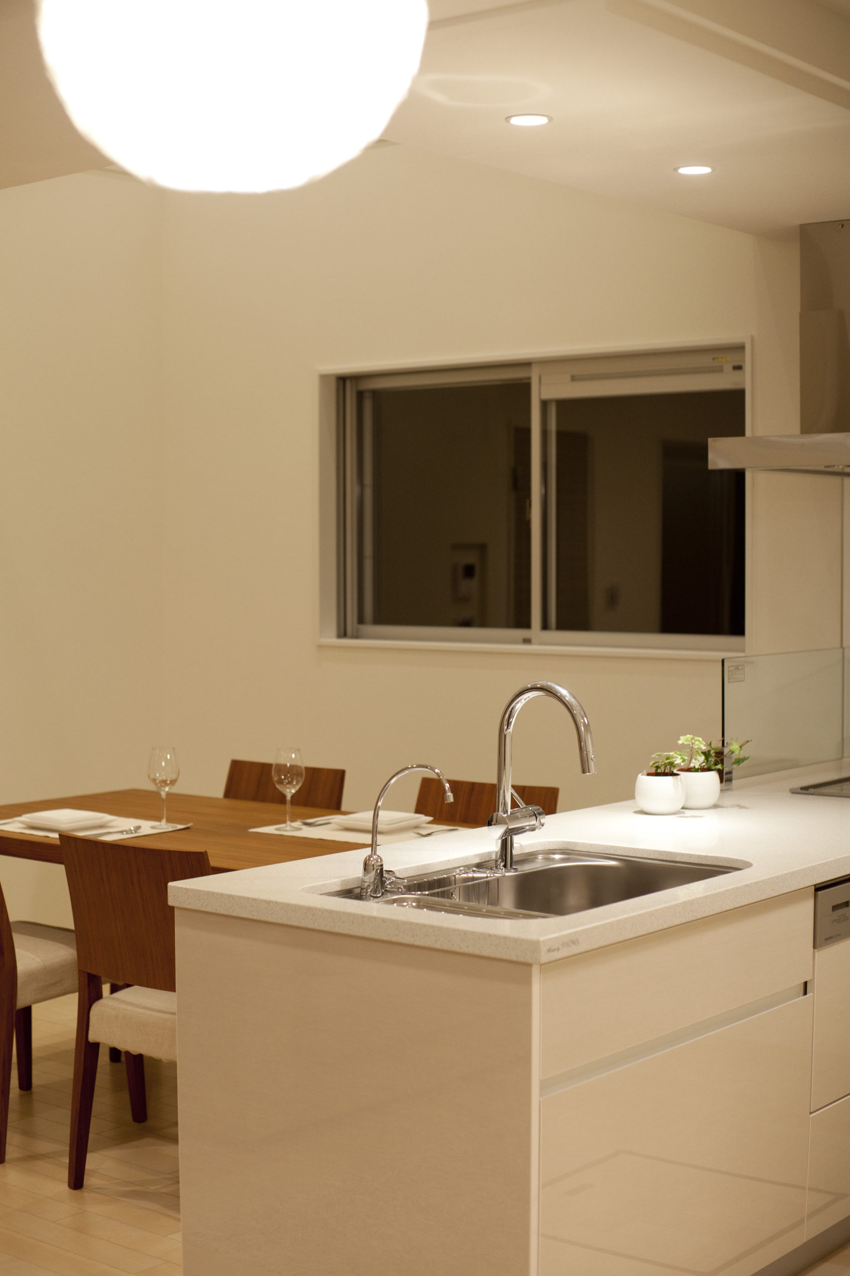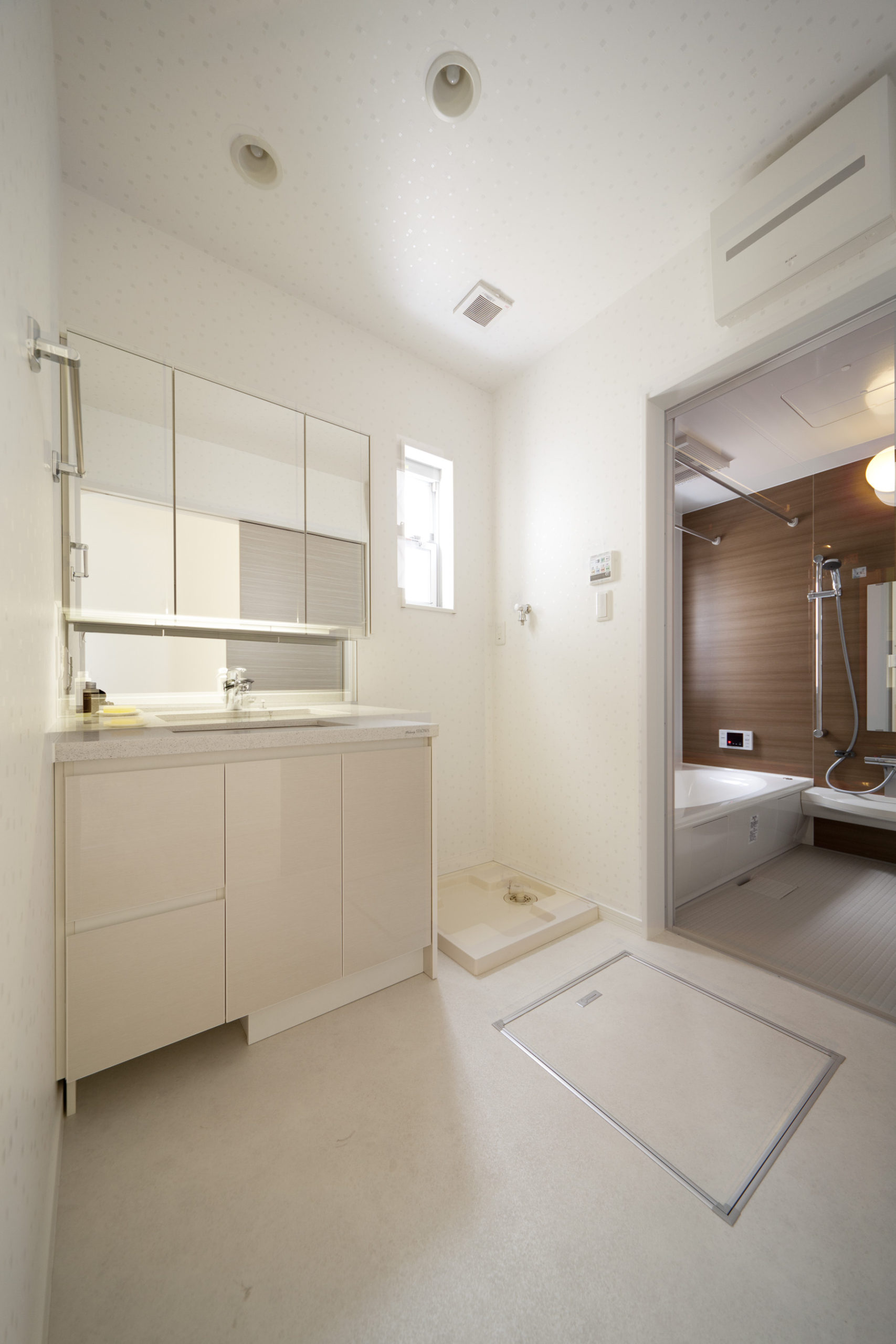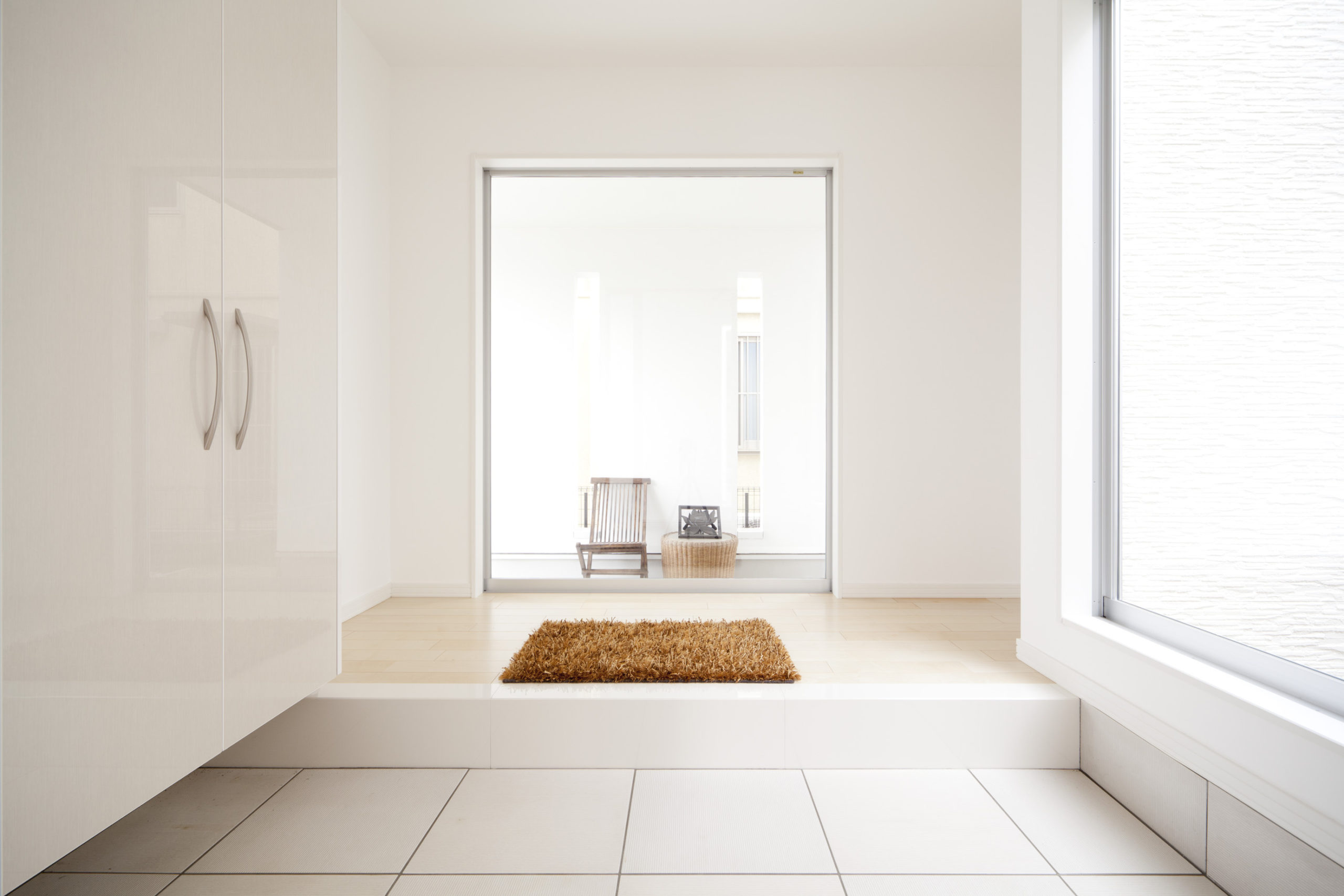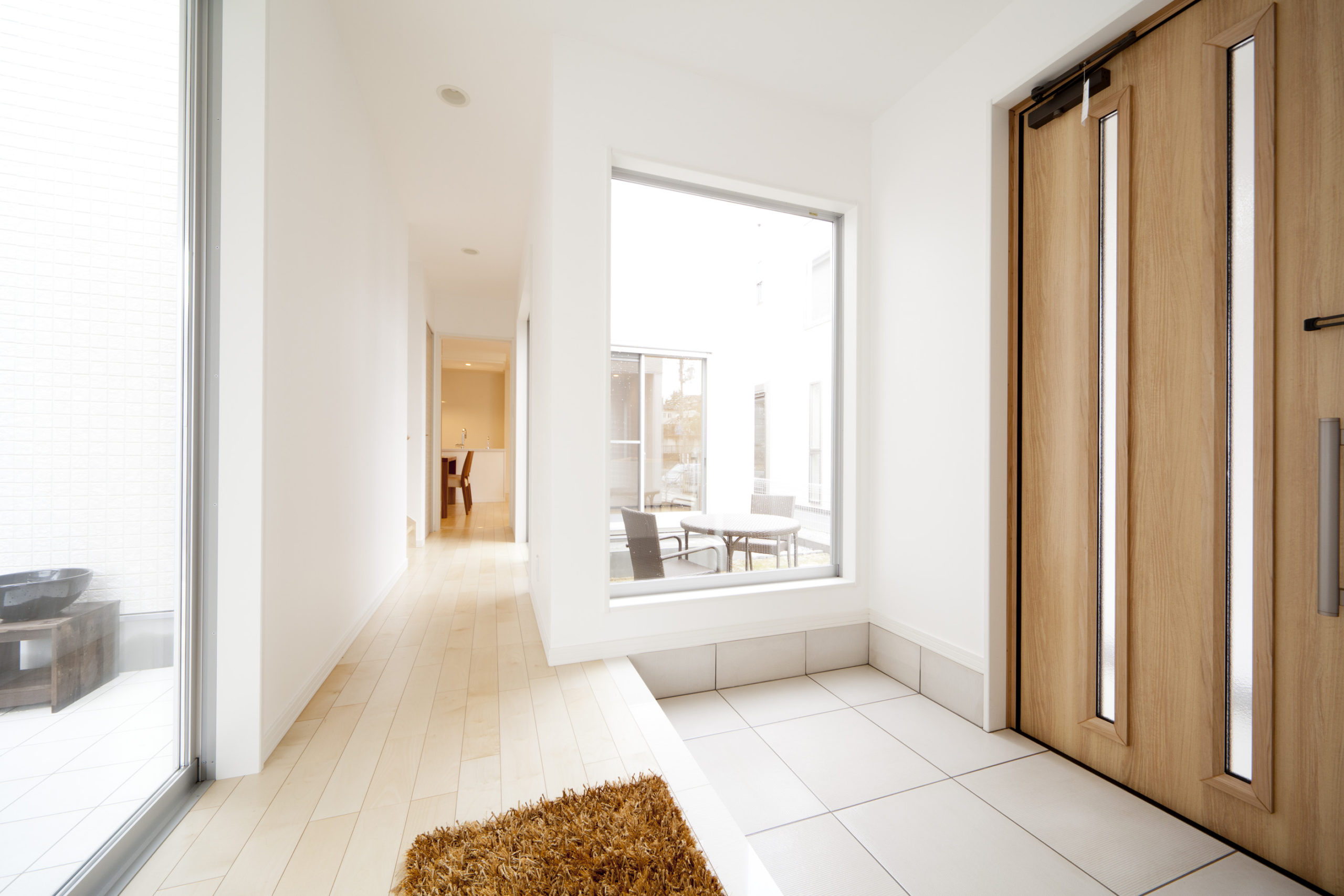 玄関を囲むように配置された中庭が、明るく開放的に感じさせてくれます。飽きの来ないナチュラルなインテリアコーディネートが永く住まう家族の気持ちに寄り添います。