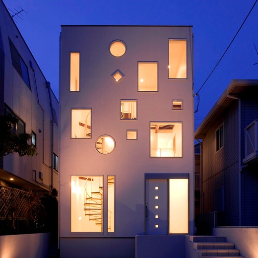 箱形の中に、バランスよく不規則に設けられた窓が目を惹く外観デザインは、存在感はもちろんのこと、
